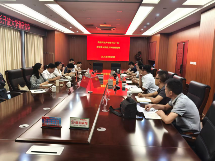 为扎实推进2025年秋季开放教育招生工作落地见效,纵深推进系统一体化办学试点改革走深走实,2025年9月18日至19日,安徽开放大学党委书记、校长杜爱玉带领调研团队,赴滁州开放大学开展开放教育办学专题调研。安徽开放大学招生与体系建设办公室主任李秀华、办公室副主任(主持工作)郭允建、招生与体系建设办公室体系建设科科长管莎莎随行调研;滁州开放大学党委书记张大银,党委委员、副校长计芳,招生与系统建设处处长孙灏全程参与调研。