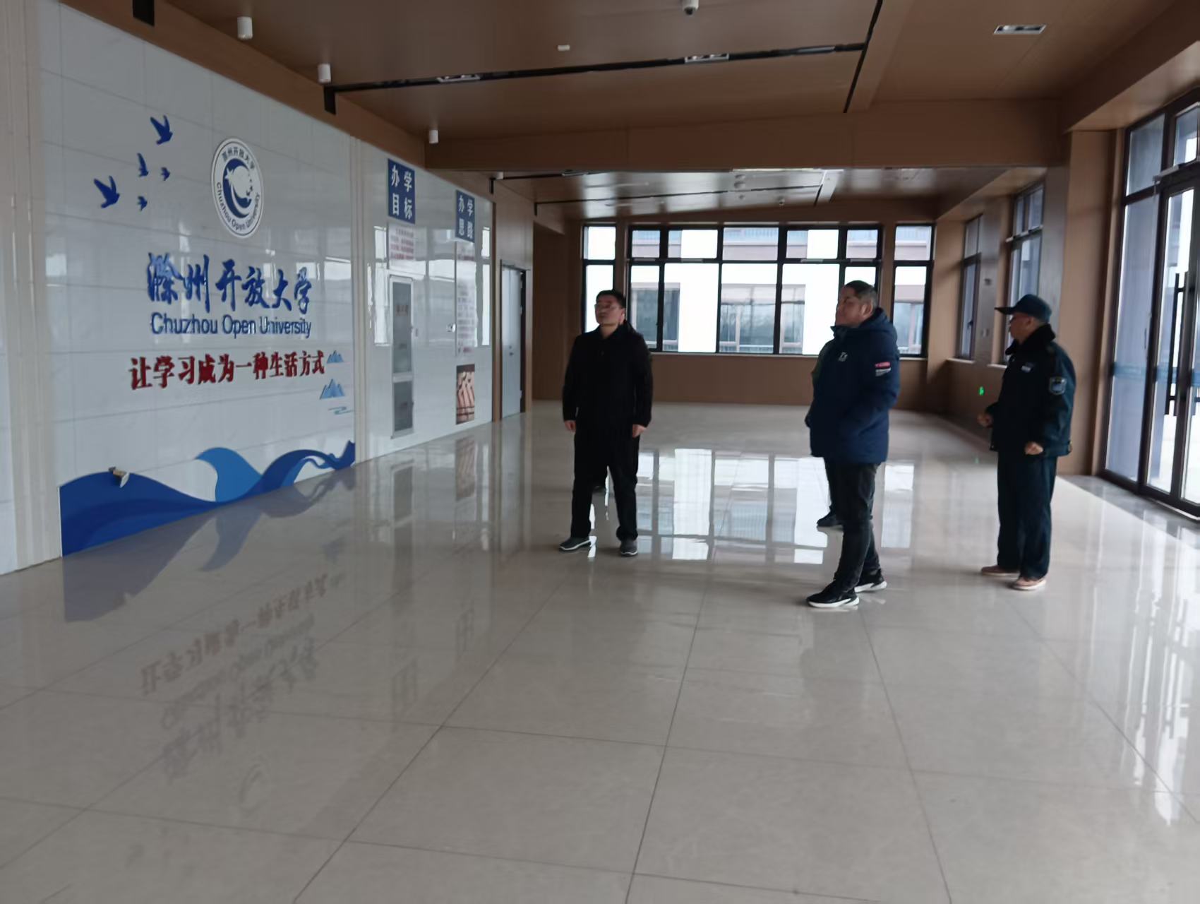 12月31日下午,滁州开放大学开展元旦节前校园安全检查活动。校党委书记张大银、副校长谢刚,后勤保障处、物业公司人员参加检查。