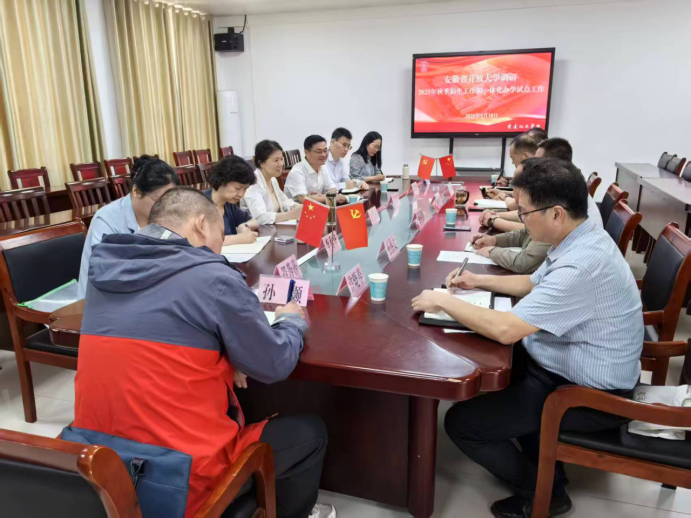 为扎实推进2025年秋季开放教育招生工作落地见效,纵深推进系统一体化办学试点改革走深走实,2025年9月18日至19日,安徽开放大学党委书记、校长杜爱玉带领调研团队,赴滁州开放大学开展开放教育办学专题调研。安徽开放大学招生与体系建设办公室主任李秀华、办公室副主任(主持工作)郭允建、招生与体系建设办公室体系建设科科长管莎莎随行调研;滁州开放大学党委书记张大银,党委委员、副校长计芳,招生与系统建设处处长孙灏全程参与调研。